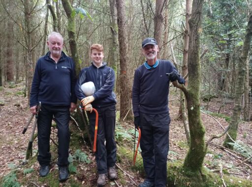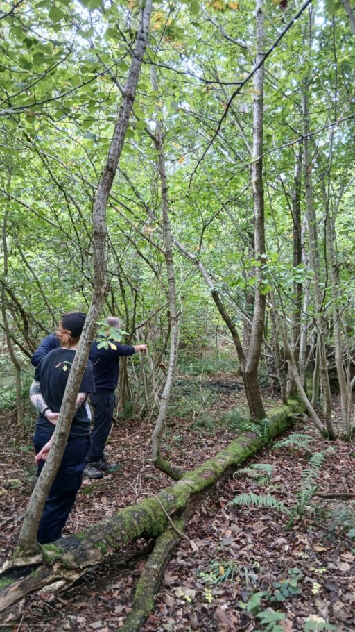 This is a plantation on ancient woodland (PAWS) site. We’re working to restore the woodland through felling and pruning pine trees, glade creation particularly around ‘phoenix’ oak trees – where trees have fallen due to the lack of light in the woods but continue to grow trunks from lateral branches.